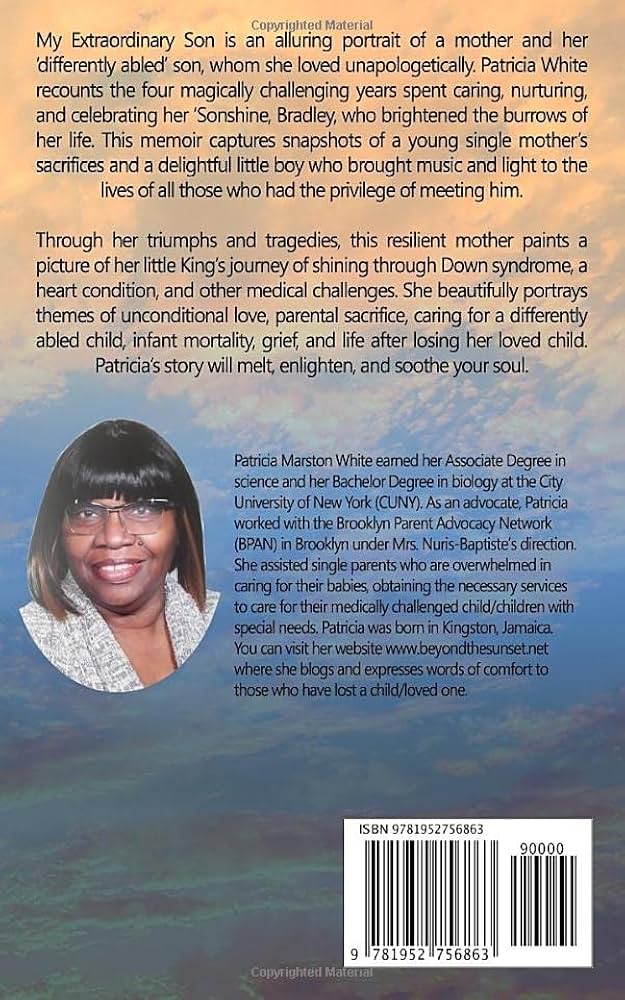 In My Extraordinary Son, Patricia Marston White shares a deeply personal and emotional journey of raising her son, who was born with Down syndrome. The book is a powerful memoir that chronicles not only the unique challenges faced by parents of children with special needs but also the profound love, strength, and resilience that grow from such an experience.